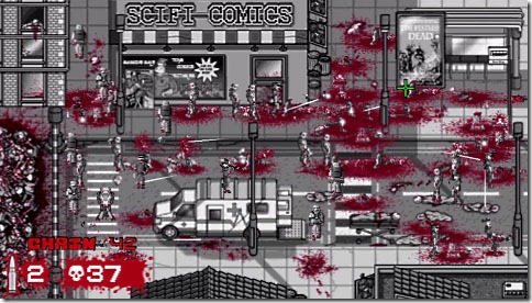 Essentially, this is a remixed version of Chillingo’s Sneezies. The screen is packed with a horde of zombies who able around in random directions. By killing one, it damages other zombies nearby it, and the goal is to use this chain reaction to kill as many zombies in one go as possible, which gives you a high score.