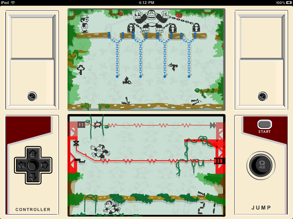 “Donkey Kong 2.” How the heck this got through Apple’s copyright checking processes I have no idea, (I suspect because Apple rather likes the idea, and will wait for the inevitable Nintendo takedown notice). The game is surely not going to be there long, so if you have an iPad (and possibly an iPhone), quickly jump on and grab it, because it’s free, and actually plays pretty well.