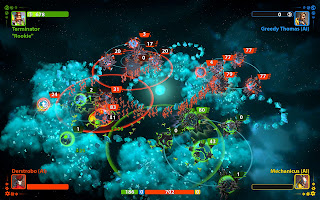There’s a serious issue with the multiplayer to that means it’s the kind of game that I can’t see maintaining a stable community, though. Because the game’s systems are so simple, outwitting an opponent with a numbers advantage is incredibly difficult. Once a player has a slight advantage – say, one extra planet generating slightly more soldiers and resources than the opponents, then it’s just about game over. Come-from-behind wins are a rarity in this game.