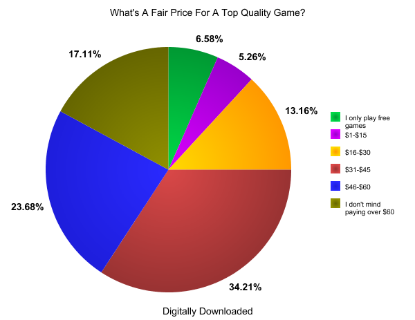 And, in fact, that attitude is backed up by a recent poll that we ran on Digitally Downloaded where a full 25 per cent of respondents believed that a reasonable price for a top-quality game was $30 or less. Anything more than that, therefore, is “too expensive,” and considering the costs involved in making a game and the profit margin that a developer or publisher actually sees from their work, charging $30 or less for a top quality game is simply unsustainable. What can we draw from that? The games industry is in trouble when it can’t convince a full quarter of its most dedicated consumers (the average reader of Digitally Downloaded is not a casual game player) of the value of its product.