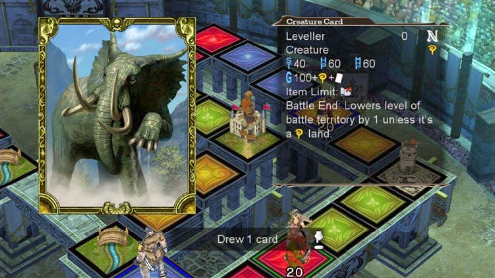 Culdcept Saga is a board/ card game with RPG elements that I really enjoyed. Creatures are summoned from customised decks of cards which players design ahead of time from their available pool of cards. Other cards in these decks bestow items to temporarily enhance creature abilities, or represent spells which can influence players or locations on the game board. There are nearly 500 different cards in total, but players must earn the majority of these through skillful play and story mode progression before they can be used. Culdcept Saga generally received scores in the “fair” range from the gaming press, but scores from unofficial player reviews being significantly higher.