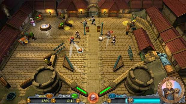 The game plays like a traditional round of pinball, although the tables are all based on RPG locales such as towns, caves and castles. Your party members take the form of balls (why this happens is never explored or even addressed, since non-playable characters still look very human) and must complete objectives on each map by bumping into targets in each level.