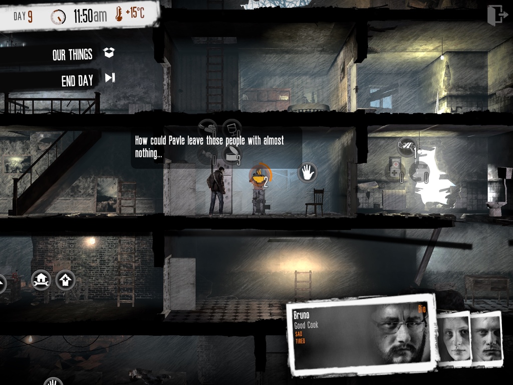 | This game is like music by Nick Cave. It’s awesome, but you’ll need a bottle of Prozac after playing. – Lindsay M. (This War Of Mine) |