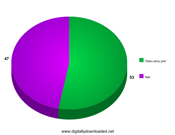 This poll appeared on my interview with the woman responsible for the Japanese film festival, which is currently running in Australia. From the poll results we can see that Japanese films are indeed popular with readers, though I personally thought the response would be more weighted towards the “yes” vote.