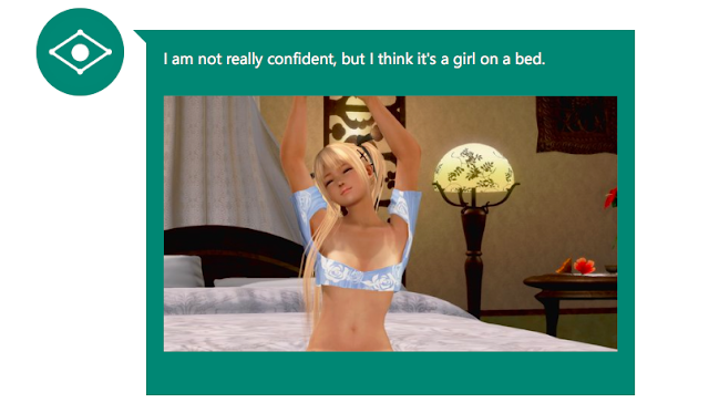 In other areas, the bot was actually quite effective, although rather uninspired in its analysis. For example, I uploaded an image of Marie Rose from Dead Or Alive Xtreme 3, and got this helpful caption: