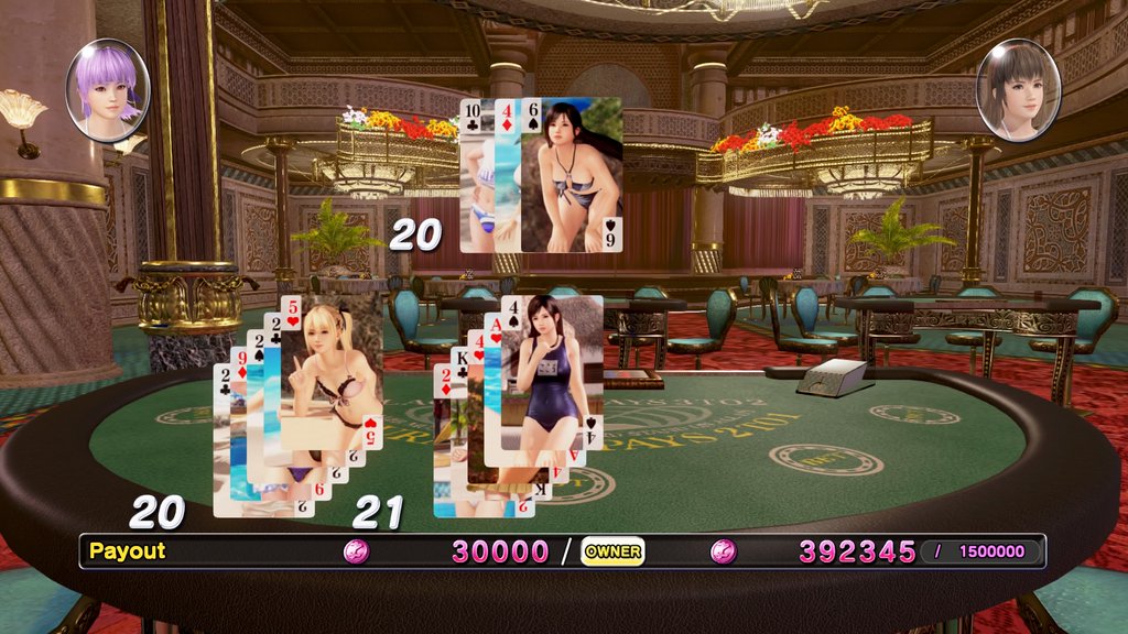| Nearly the perfect hand of Blackjack. At least the cards are perfect 😉 – Dead or Alive Xtreme 3 |