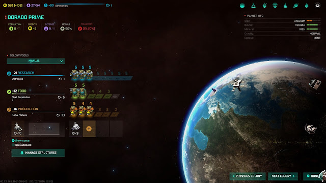I’m about 100 turns in when I realise something is going very wrong with my little galactic empire. My rate of production was slowing down. I was spending a lot of my time chasing space pirates around, and they were taking advantage of my disorganisation and dropping nuclear missiles on my population. I had expanded to five planets, sure, but at least two of them were developing too slowly to be of much use; one because the gravity conditions didn’t suit my population, and the other because I mistakingly assumed that I’d be able to effectively mine a life-devoid rock planet by using science to artificially sustain the population.