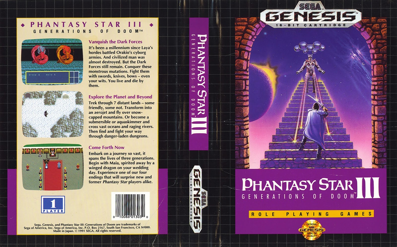 Recently, I was reflecting back on Phantasy Star II, a game that was very memorable to me despite some of its shortcomings. I would go so far as to say that at the time of its release, it was one of the best JRPGs out there. Years later when Phantasy Star III: Generations of Doom arrived, it was heavily panned by most critics and even most of my friends. Was it really so bad? I played through it few different times, but I had not touched it in many years, so I decided to go back and see for myself.