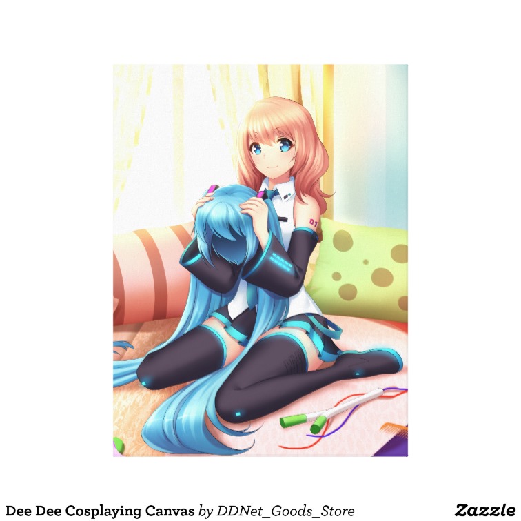 For the real digitallydownloaded.net and Dee Dee fan is this deluxe, giant (18″ by 24″) canvas print of Dee Dee getting dressed to cosplay as a certain super idol. The art wraps around the frame perfectly, making this a real centrepiece of any anime/ manga/ gaming fan’s room or den.