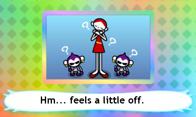 It’s clear from the single player campaign that Megamix is a fuller gameplay experience compared to the minimalistic design of the DS and Wii entries. The player is introduced to a protagonist, Tibby, who aims to return back to his home-world of Rhythm Heaven with the help of some friends along the way. The writing is lighthearted and will bring a smile to most players, but it does create large breaks of the game which don’t involve rhythm minigames. It’s honestly odd to see so much text in a Rhythm Heaven game, since the previous titles were so adept at visual storytelling through the individual minigames.