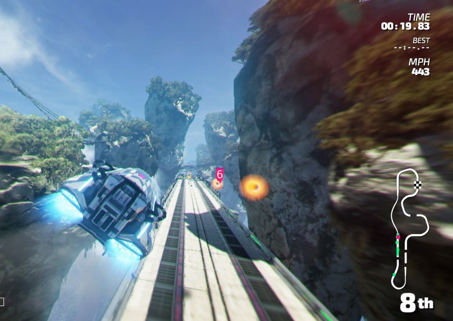The track design is superb, guiding players on a scenic tour through various futuristic locales while providing a challenge for even the most seasoned driver. All 16 tracks from FAST Racing Neo return with slight graphical updates, while 14 brand new tracks are also available to race on. While the tracks from Neo tend to bear a Japanese aesthetic, the new tracks are more international, taking players to Iceland and Antarctica, deserts and outer space. There is clearly a lot of effort spent on making each track feel unique both visually and in terms of the gameplay, with some featuring track hazards, environmental effects or branching paths to keep the racing fresh.