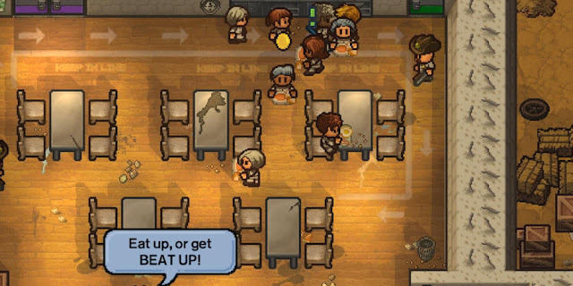 The central feedback loop is simple enough to understand: prisons operate on daily schedules to keep the inmates in line. Roll call in the beginning and end of the day absolutely cannot be missed unless you don’t mind some solitary confinement, while missing meals, job or exercise time will increase security presence. Players will learn to plot their schemes in free time, and use things like meal breaks as an opportunity to complete some favours for money and spend their money at one of the various vendors. It feels rather Sims-like, in that players will need to juggle their obligations to the prison, keep their health and energy meters up, manage relationships with guards and inmates all while trying to enact their ultimate breakout plan.