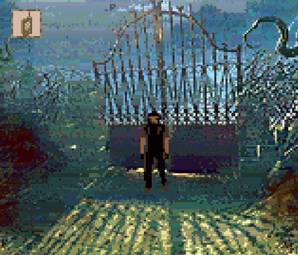 Was it actually scary? No, not really. There’s only so much fear you can pack into fuzzy blobs and hazy backgrounds. Once upon a time Capcom canned a Game Boy port of Resident Evil itself because, though the developers had managed to get the game working, Capcom believed that it lacked the fear factor, which people wanted for the series (at least, back then). I don’t blame them, looking at Alone in the Dark’s Game Boy Color. At the same time, though I wouldn’t call it horrific, I would quite happily say that it was atmospheric and gloomy, and actually an impressive example of art direction within the most severe of technical limits.