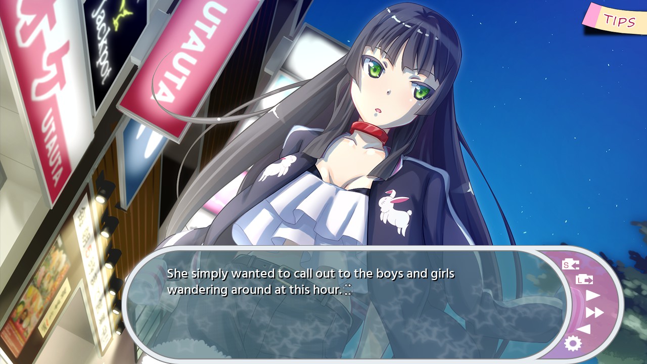 But even while all this is happening, there’s that far more serious backdrop to Chuusotsu, and it’s something the game comes back to repeatedly. Aside from their own chuusotsu troubles, the girls meet so many people whose lives are burdened under the weight of their Authorization Seals, from overworked, low-paid fast food managers to sex workers living in a world that both needs and despises them. For Arue, things get very grim when she starts obsessively reading an anti-chuusotsu message board full of increasingly hateful, violent comments.