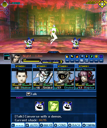 To series newcomers, the knee jerk response might be to get offended. On the other hand, the fact that creatures and plotlines that people have believed in for thousands of years appear means they’re providing a more complete philosophical discussion.  Besides, few abominations created solely for a game could carry the kind of existential dread or scholarly intrigue as ones that have existed in text for great swaths of human history. It’s not unprecedented for monster-collecting games to take inspiration from religion and folklore, but few have that same thematic consistency or lore as the Shin Megami Tensei games. You won’t see sentient ice cream cones, but that’s not to say the game can’t be goofy or darkly humorous when it sees fit.