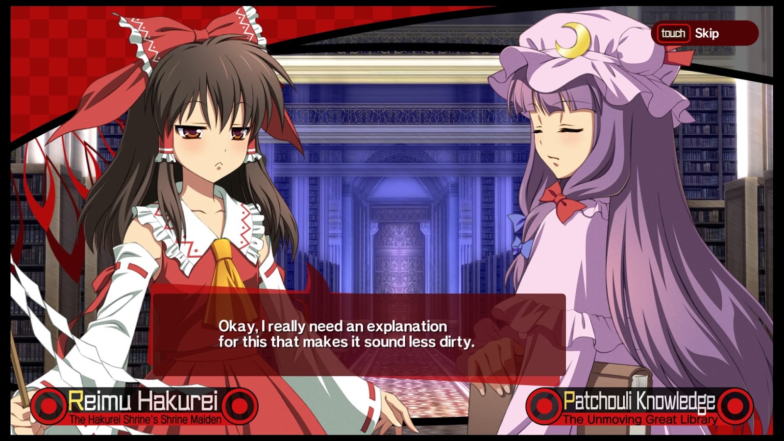 The story wrapped around this is a light touch: a mysterious red mist prompts the shrine maiden and longtime Touhou heroine Reimu to investigate, getting her caught up in a time loop and an endless battle with the residents of Scarlet Devil Mansion. The only way to break the loop is to destroy a magical blue mirror hidden within the mansion, though Reimu will need to get past the vampires Remilia and Flandre Scarlet in order to do so. (Meanwhile, the witch Marisa and ice fairy Cirno also get inadvertently caught up in the time loop, mostly due to their own curiosity.)