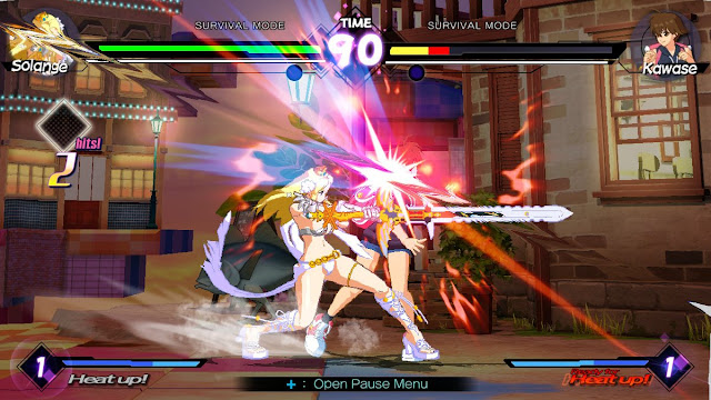 There’s plenty of humour in Blade Strangers, from the surreal ridiculouslness of having Isaac from Binding of Isaac in there at all, through to the frequent comments on Code of Princess’ Solange’s sense of fashion. Oddly, though, the fan service tends to be a little on the limited size; there’s no alternative costumes to unlock (just alternate colours), and no bits of art and the like to act as rewards for ongoing play. That’s a missed opportunity in a character mash-up fighter, since the very existence of these things is as fan service.