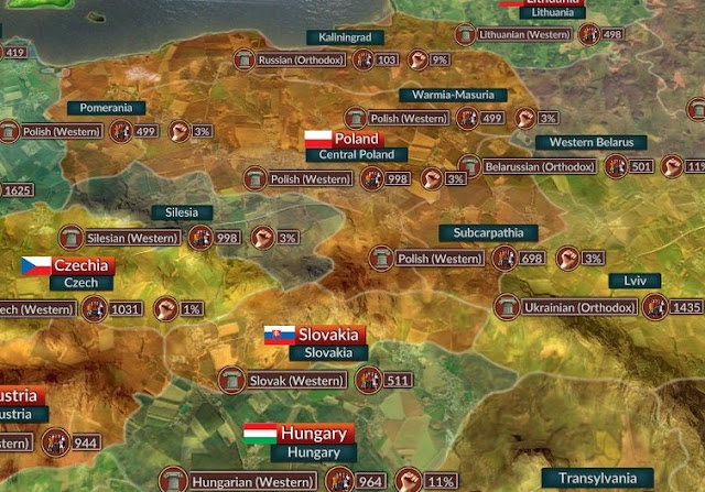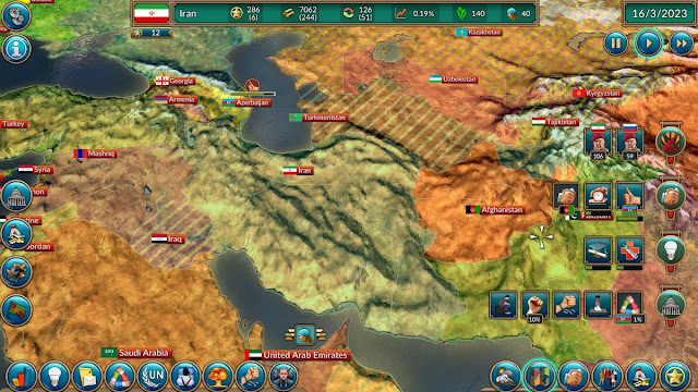 Victory conditions vary, depending on the nation you choose. Pick one of the top half dozen or so of the leading nations and you’ll get a choice of victory conditions to work towards… some pacifist, others less so. Pick one of the lesser nations and the sole victory condition is to end up as the most powerful nation (determined by a victory point system for hitting milestones along the way), in the span of 100 years or so. Again, to pick on poor Palestine, that’s one hell of a task.