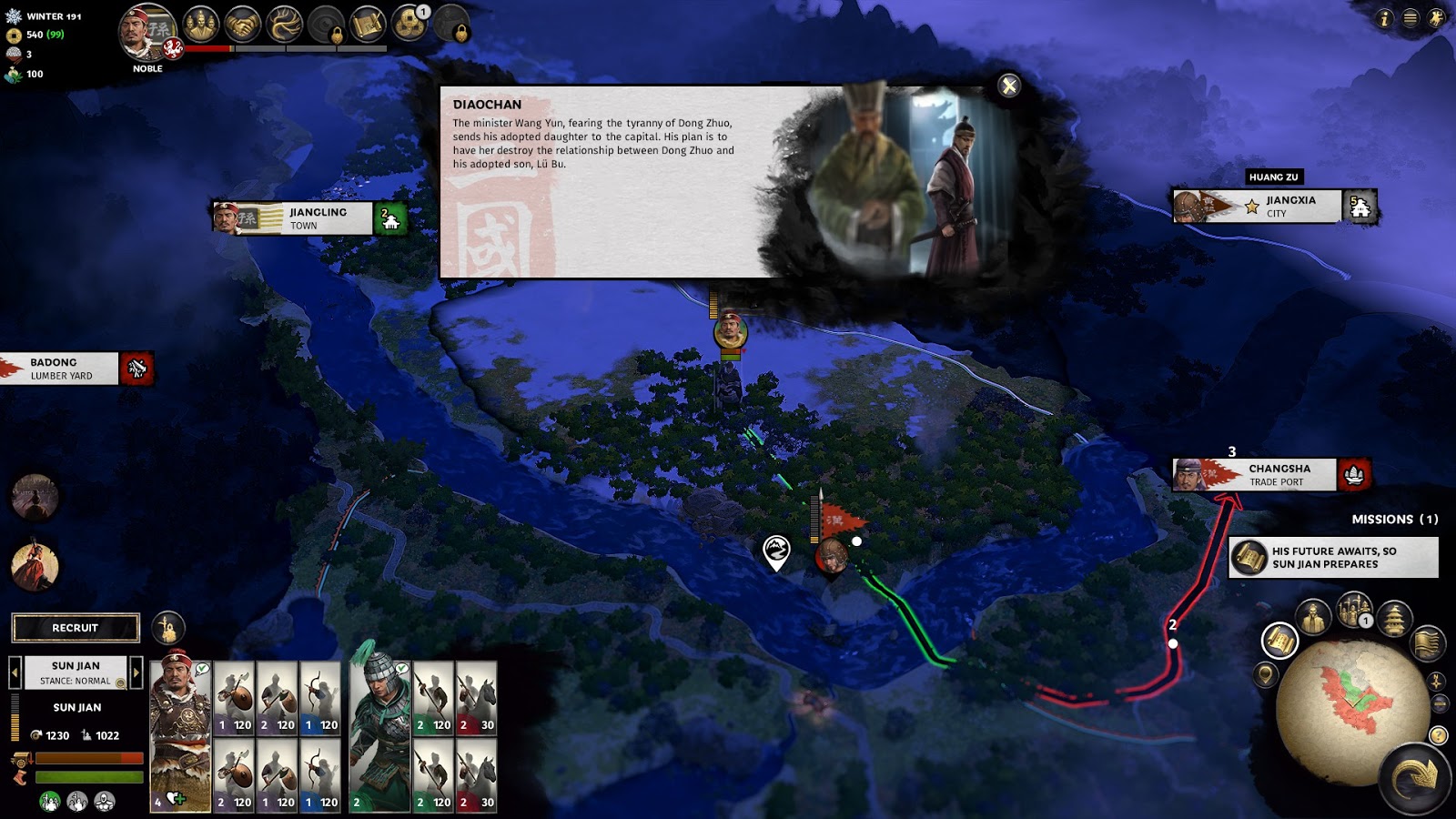 The game also does a great job of distilling a 2,000-odd page book down to a narrative that’s palatable to a player who hasn’t read the book before. Short cut scenes and clearly-written event descriptions make it clear which warlord has betrayed who, and why one warlord has declared war on another. The Three Kingdoms era was a turbulent one, but focused around the stories of three “nations” that would come to dominate – the forces of Cao Cao, the Sun family, and Liu Bei. This game makes sure that you’re keenly aware of their movements, while the more fringe nobles and events can be left for when you’re more comfortable with the material. Already my favourite challenge is trying to actually succeed as the ultimate underdogs – the yellow turban rebellion. Talk about underequipped and up against a hostile diplomatic environment.