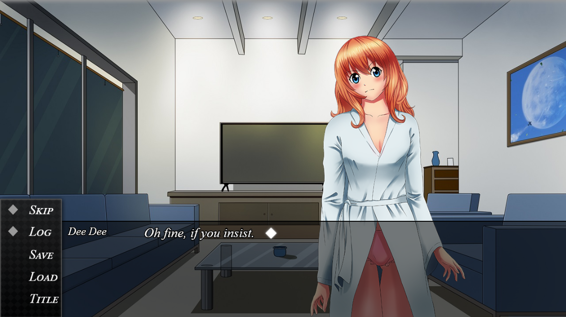 As Volume 1 explores the erotic thriller, there is some sexual material in this visual novel which might make players uncomfortable. We promise that not every My Time With Dee Dee visual novel will be adult in tone and content, but we also don’t want players going into this without fair warning.