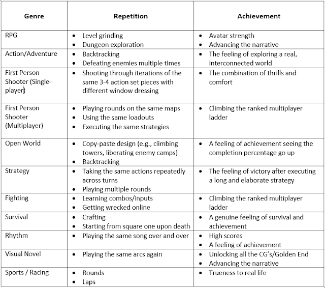 To answer that, I’ll have to expand upon my analogy of JRPG’s and repetition. Here is my argument for why every game genre is an exercise in repetition: