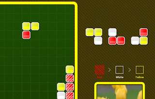 Red White Yellow works as follows: blocks drop down from the screen to land in a Tetris-like play field, and come in three colours. Your goal is to connect six blocks of the same colour, and you need to do that in order. So you need to connect at least six red blocks, and then six white blocks, and then six yellow blocks, before again connecting red blocks. If your current goal is to match up white blocks, then forming a chain of six red blocks isn’t going to help you.