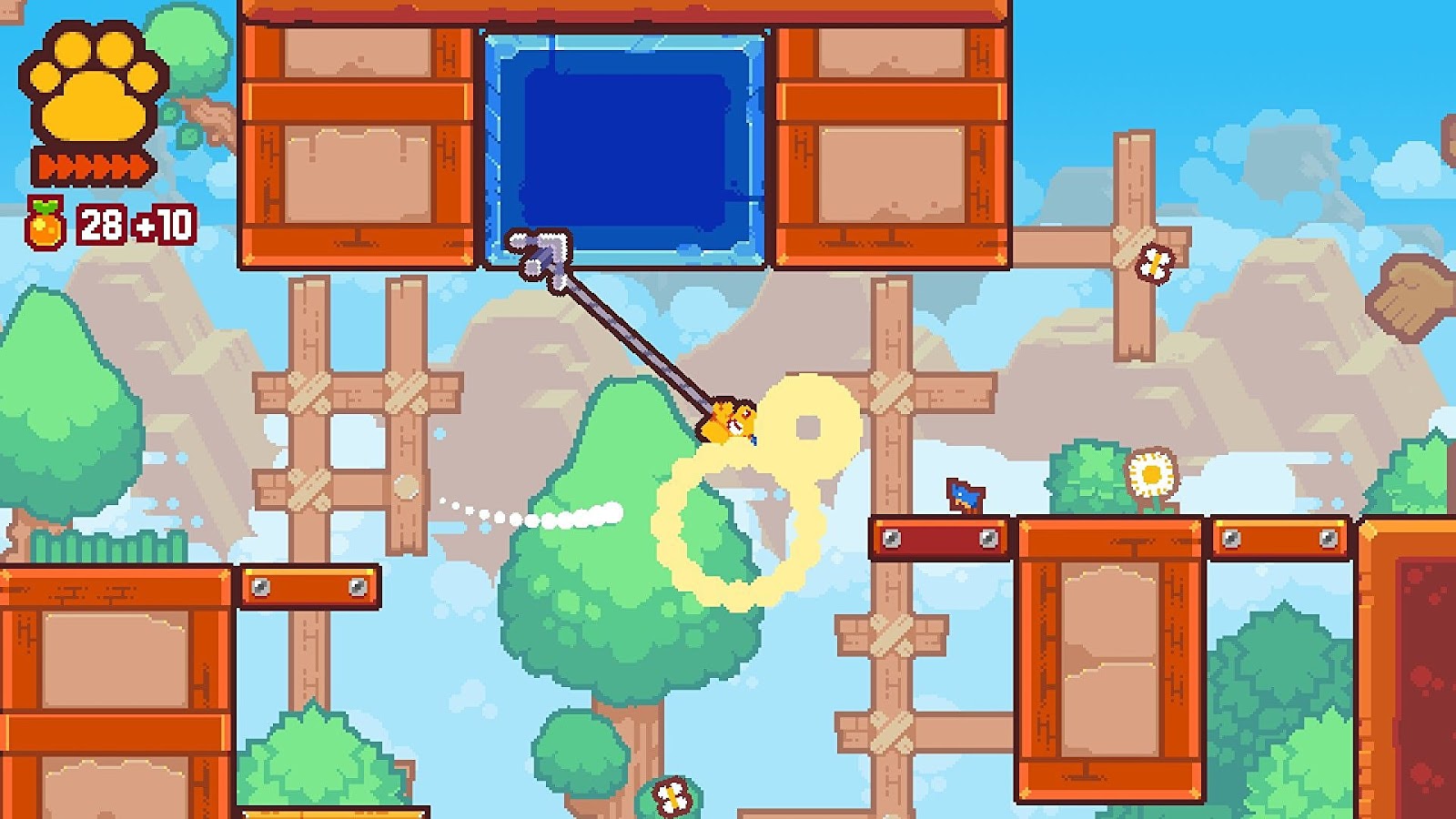 It’s hard to stay mad at the game, though, because it’s so good-natured and clearly built by people that love the genre and have committed all of the greats to muscle memory. Levels are designed with a kind of flowing creativity that makes each section of a level its own thing, and there’s not a moment in them that isn’t popping with colour, energy, and vibrancy. Each new level seems to throw up new ideas, or at least significantly different variations on existing ideas, and so each new level becomes something to look forward to. There’s some good challenge here, too. Grapple Dog looks warm and fuzzy and has a light narrative, but it’s happy to test your platforming skills, too, just as genre fans would like it.