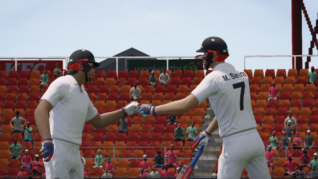 And, finally, there are some really weird glitches at times. I created a “Japan” team (as I always do with Cricket games, putting myself and pals into it), and set Sydney Olympic Park oval as the home ground (I like that one). That ground has orange/red, and it’s almost impossible to watch a cut scene while playing on that one, because the seats alternate between those two colours like it’s TV static, and it’s enormously unpleasant to look at. I’d capture video, but video capture has been disabled on this game.