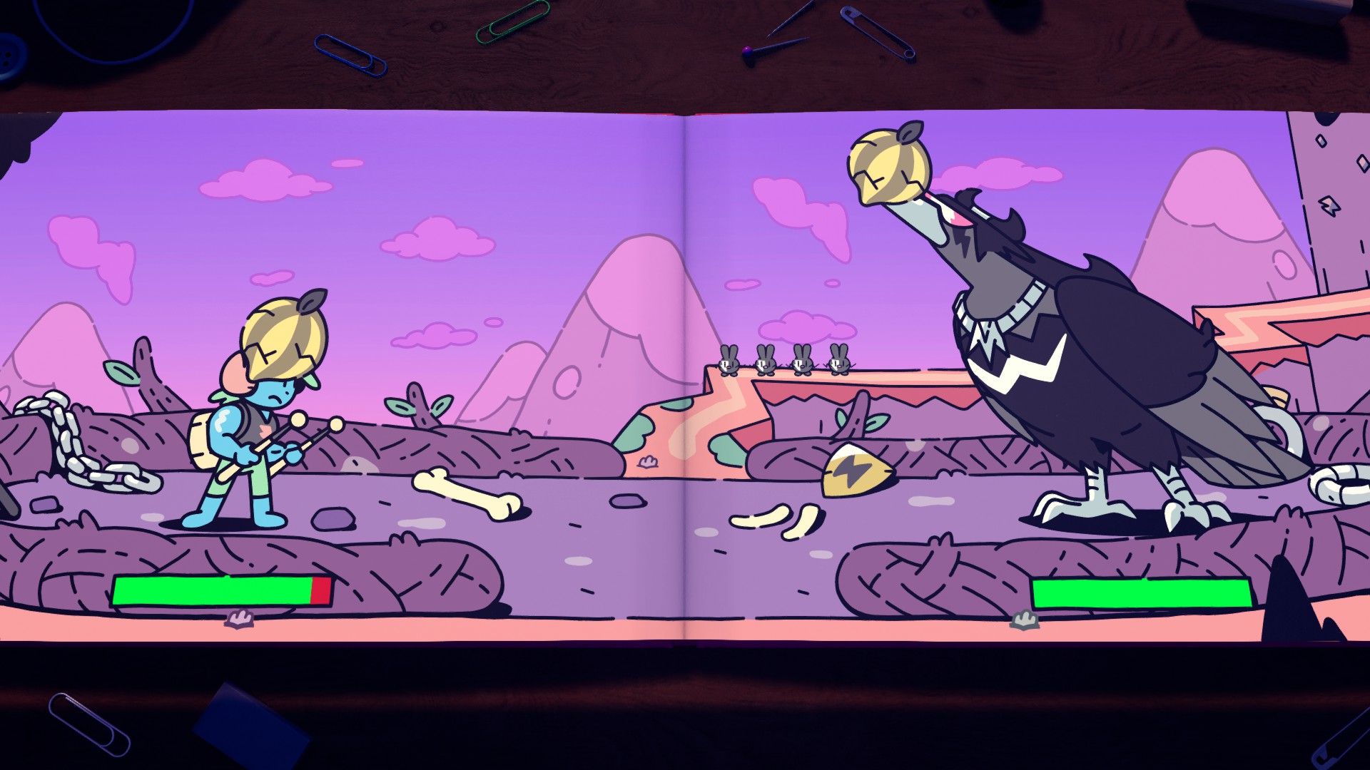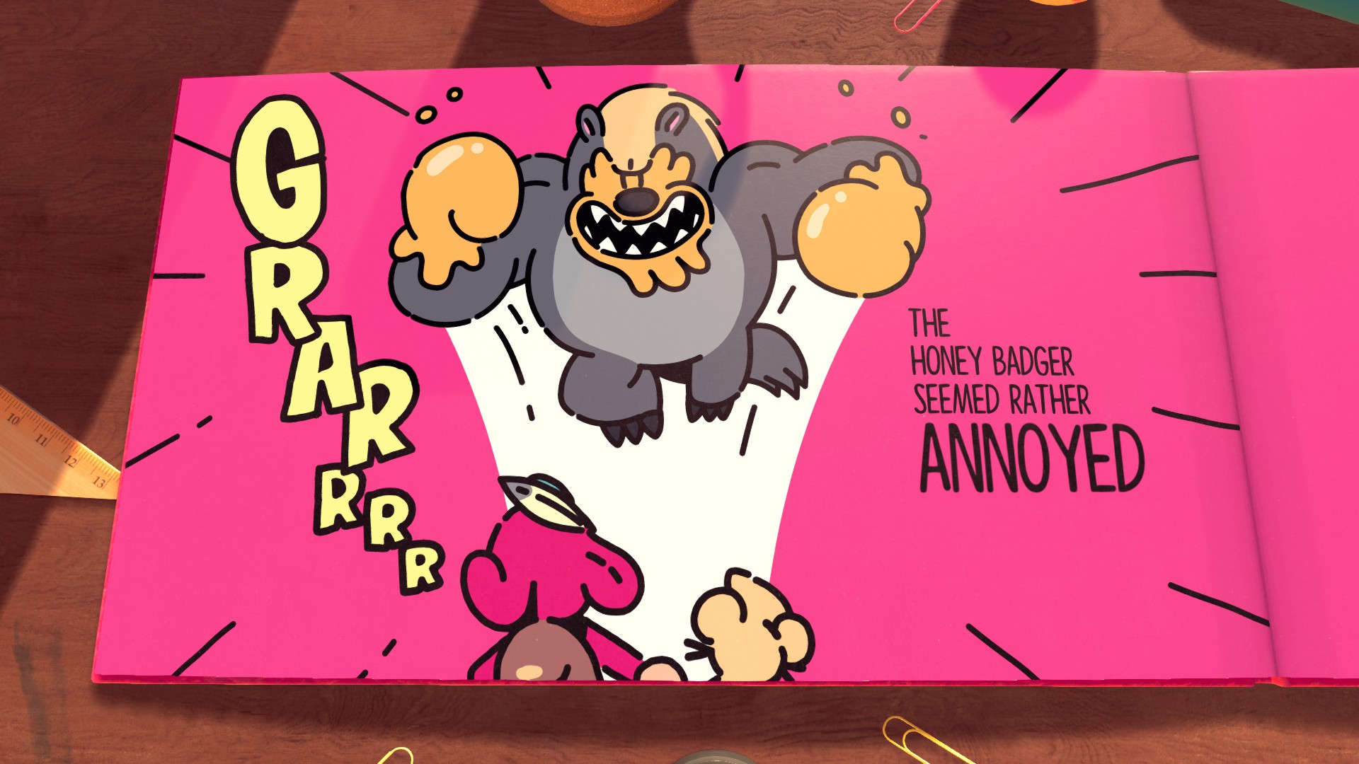 Even if you know the transition is coming, it’s done in a really visually engaging way, and it forms the primary hook of The Plucky Squire. If you’re faced with an impassable wall, or need a new power entirely to deal with a new threat, jump out of a portal from the book to the desk and get to searching around to find it before getting back to the story at hand. I couldn’t help but grin every time this happened, because while it’s a simple effect, it’s genuinely well realised in an artistic sense.