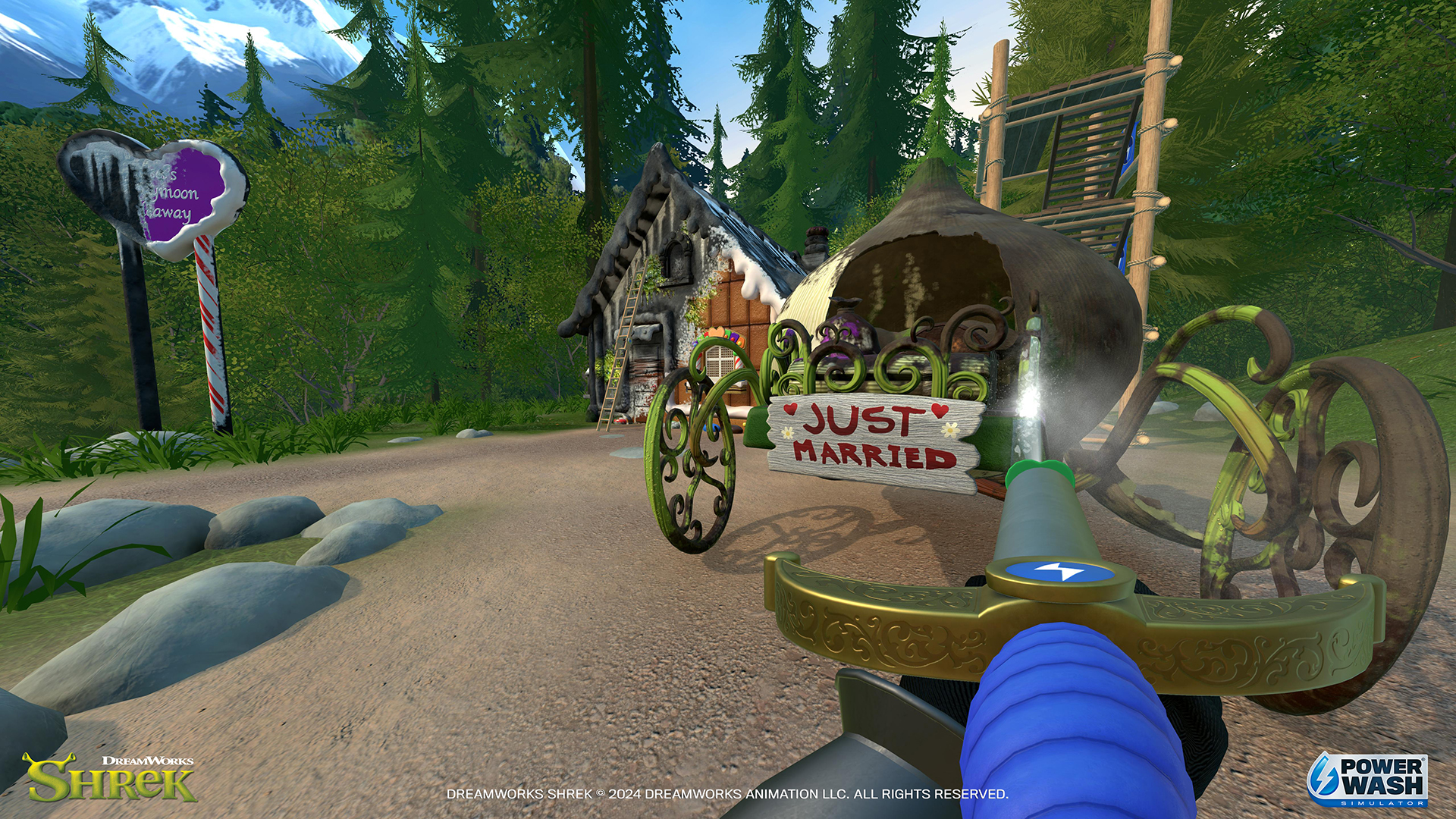 A screenshot from PowerWash Simulator's Shrek DLC Pack.