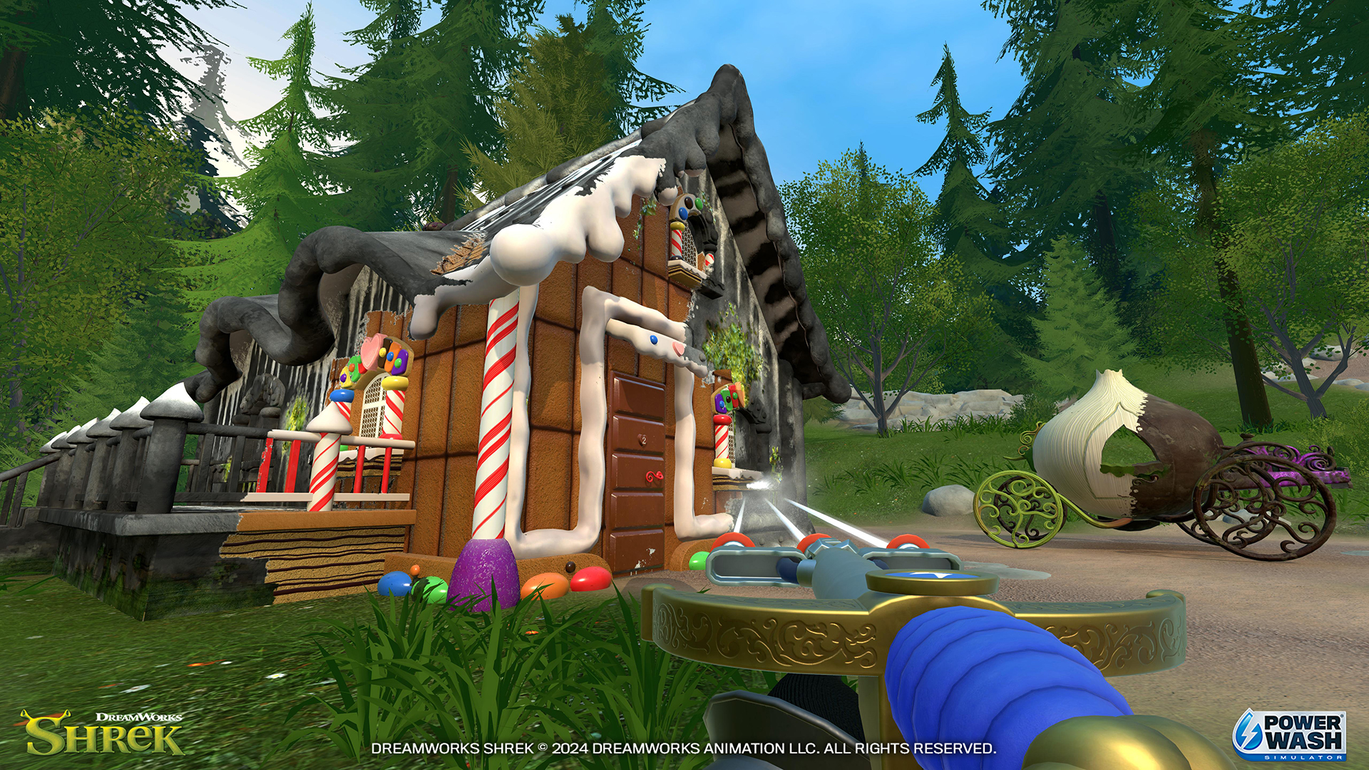 A screenshot from PowerWash Simulator's Shrek DLC Pack.