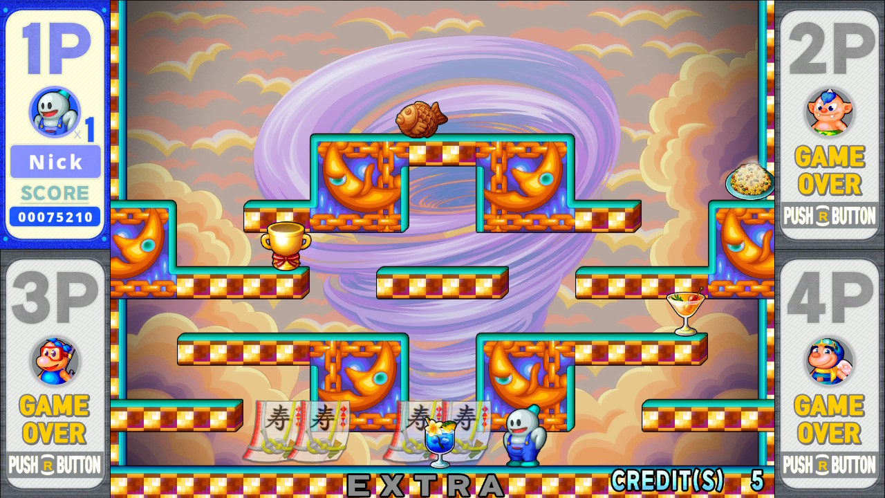 Ever played Doodle Jump or any of its many clones on your phone over the years? That’s Sky Run in a nutshell, albeit with Snow Bros characters. It’s a cute diversion, but the core mechanics of the levels don’t really lend themselves to anything that’s all that compelling in and of itself. As an extra bit of value for Snow Bros 2 Special it’s not bad, but it wouldn’t make the grade as a standalone game, though I suspect meetings may have been held to work out if that was a viable business model in itself. Modern game making is like that, you know?