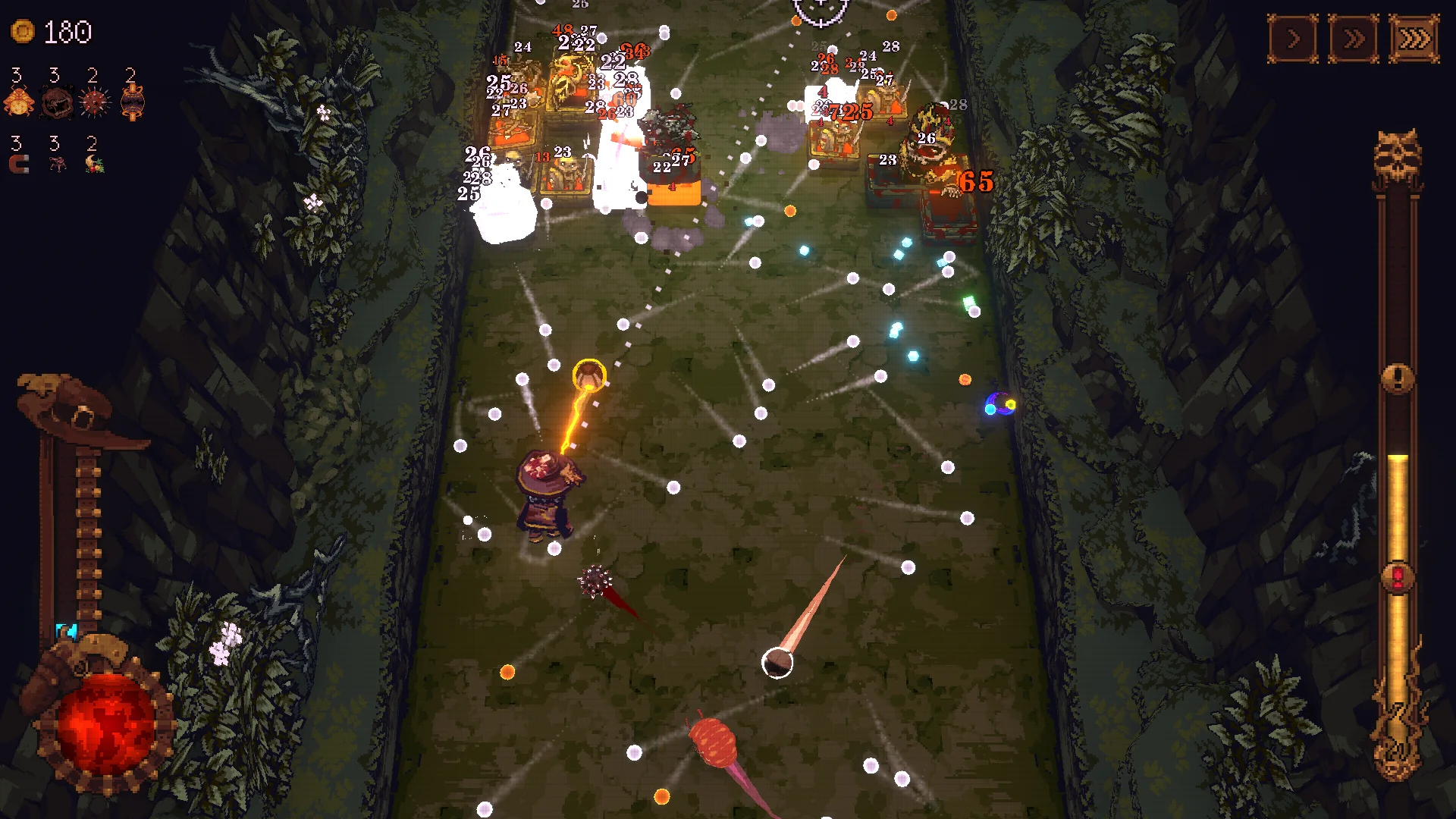You don’t fail when balls go past your hero at all, but that does introduce a delay in firing them back up the screen that can become problematic, especially later on in a level where there can be dozens of enemies that need to be destroyed before they get within attack range of your character.
