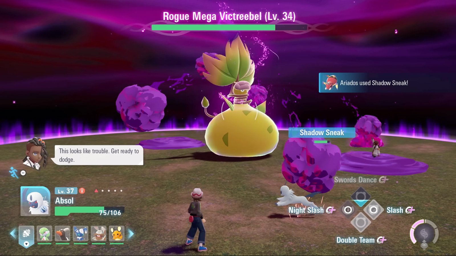 Another change is the location. Rather than a sprawling open world, Z-A takes place entirely within a city. It is a playground of a city, though, with ample opportunities to scale the walls and run around on the rooftops, and plenty of nooks and crannies to explore. Then there are designated zones where you can find plenty of new monster pals to catch and add to your roster, and at night, battle zones spring up (which is where you combat other Pokémon trainers and move through the ranks). Aside from the unique setting, this side of Z-A feels very traditional to the Pokémon series, and it’s a good, clean system that I enjoy a great deal. If there was one thing I didn’t enjoy about the previous Legends game, Arceus, it was the sheer number of duplicate Pokémon you’d end up with. I’ve always liked to keep my boxes efficient with the minimum number of Pokémon I’d actually need.