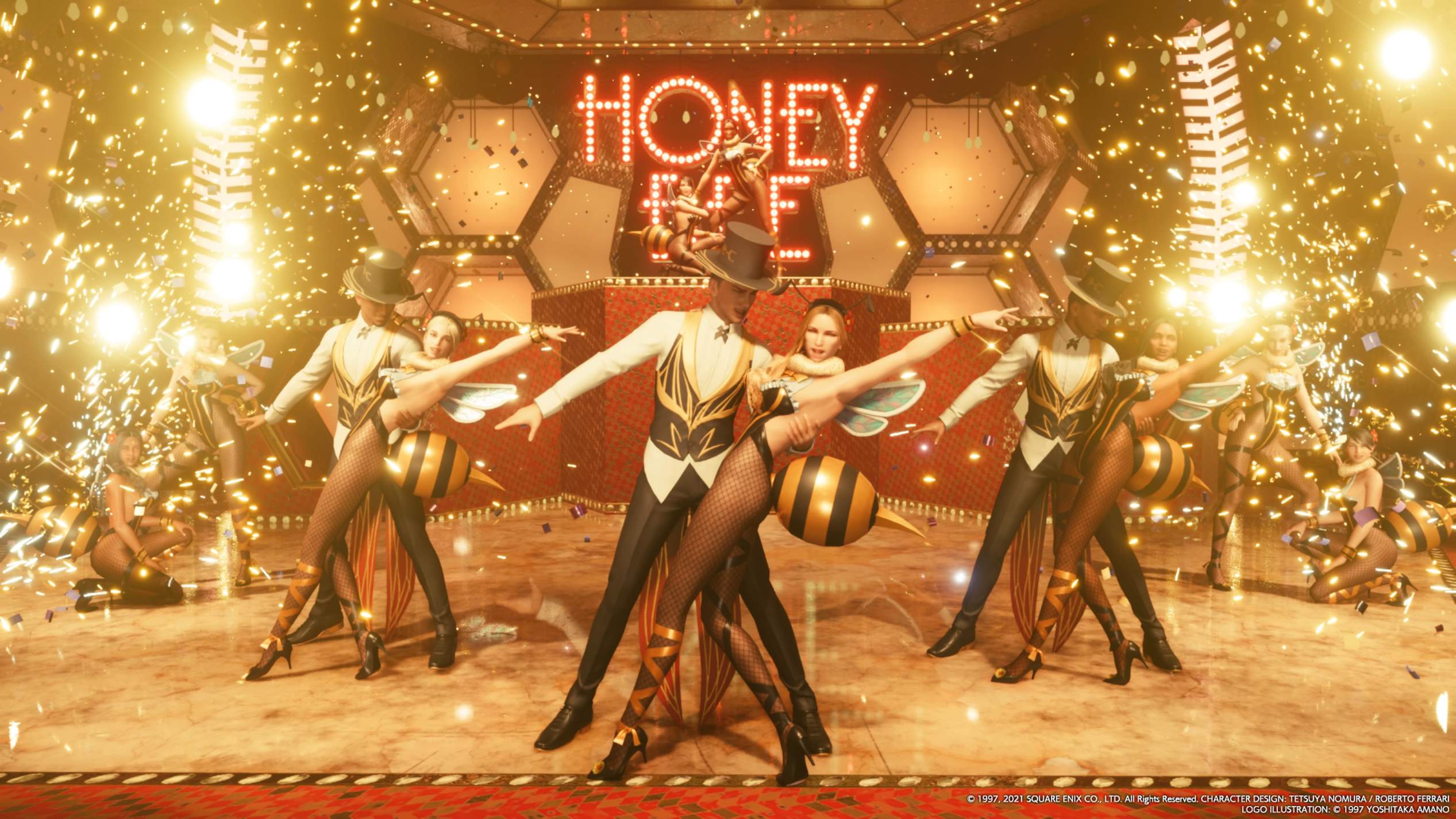 Finally, it should go without saying that Final Fantasy VII is a spectacular looking and sounding game. That much is obvious just from the screenshots, but the impact of being able to look up in the sky and see the disc of the “upper world” hanging over the population of the slums like a sinister Sword of Damocles is, all in itself, an incredible bit of world-building. Characters are uniformly gorgeous, as mentioned before and that “somehow superior to real humans” look fits lovely with the “fantasy” angle that’s right there in the title. Many of the environments are ruined slums, and therefore there’s a lot of browns and the messy, clashing colours of trash piles, but it’s deliberate and technically pristine, and then makes those scenes where you escape it for just a moment, such as the red light district or Aerith’s rare flower-filled garden, all the most potent.